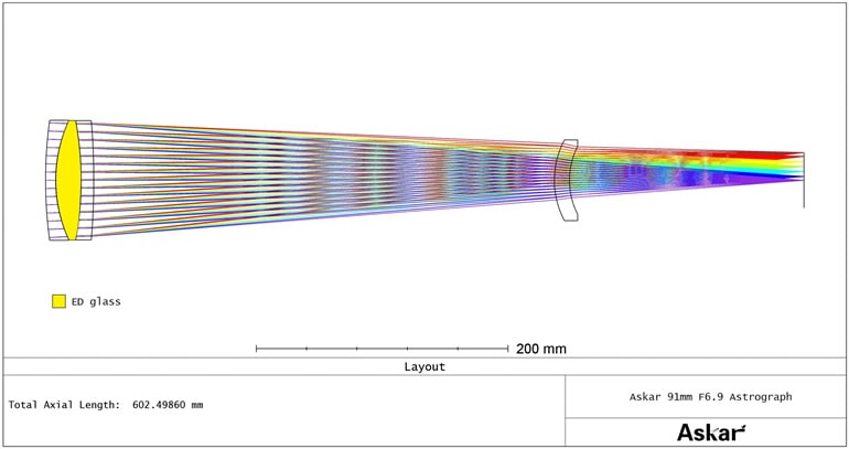 ●Askar 91F鏡筒は、口径:91mm 焦点距離:609mm、口径比:F6.7のED屈折望遠鏡です。