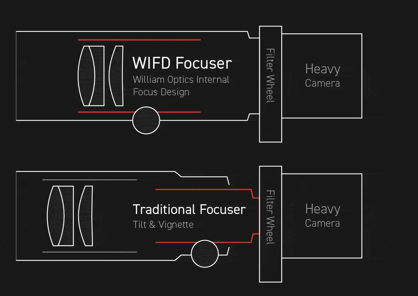 ●スーパーEDガラスとランタンガラスを含む5枚構成の高度なペッツバール光学設計と、明るいf/4.8の焦点距離比、50mmのイメージサークル全体にわたって驚くほどシャープでフラットな画像を提供します。フルフレーム、APS-C、M4/3センサーに最適化されていますが、50mmにもおよぶイメージサークルは中判カメラにも対応可能です。 ●WIFD(William’s Internal Focuser Design) 特許取得済みのラック&ピニオン式インターナルフォーカサーが、安定した高精度なフォーカシングを実現します。ケラレやバランスの問題がなく、天体撮影に最適です。EAF(電子式自動フォーカサー)と互換性があり、精密なフォーカス制御が可能です。